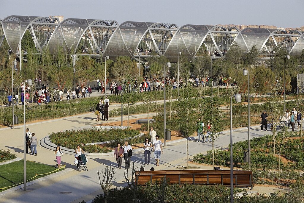 Макар река Мансанарес да не е голяма, градът използва възможността да трансформира цял коридор около нея в дълъг линеен парк – с пешеходни и велосипедни алеи, спортни зони, детски площадки и културни пространства.