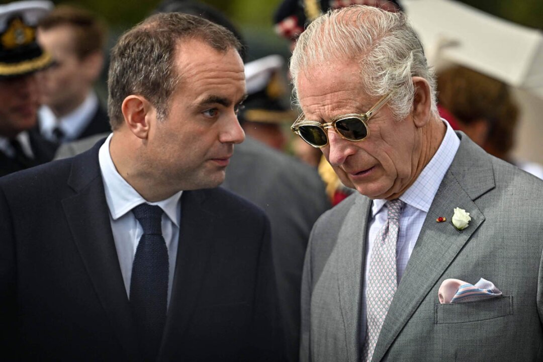 Чарлз III с министъра на отбраната на Франция Снимка: ЕПА/БГНЕС/Ugo Amez