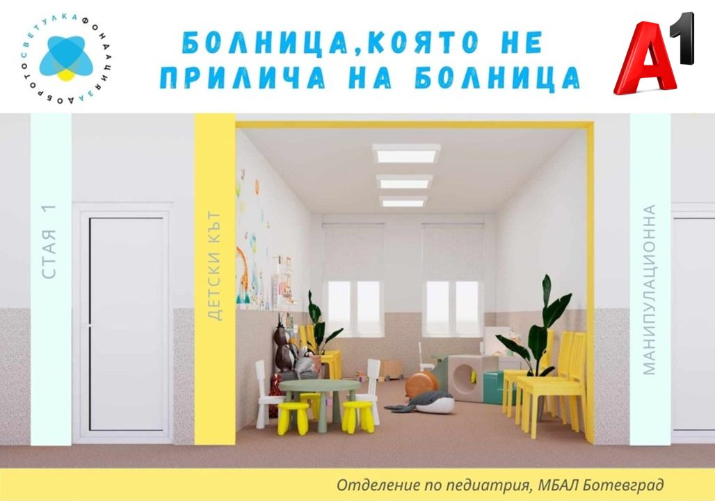 Официално стартира обновяването на детското отделение в МБАЛ Ботевград по проект „Светулка“ на фондация „За доброто“ с подкрепата на А1. Сумата за преобразяването на педиатрията в размер на 150 000 лева е дарена от телекома в рамките на дигиталната кампания с кауза „Свързва ни доброто: Дари за децата, а А1 ще удвои сумата“.